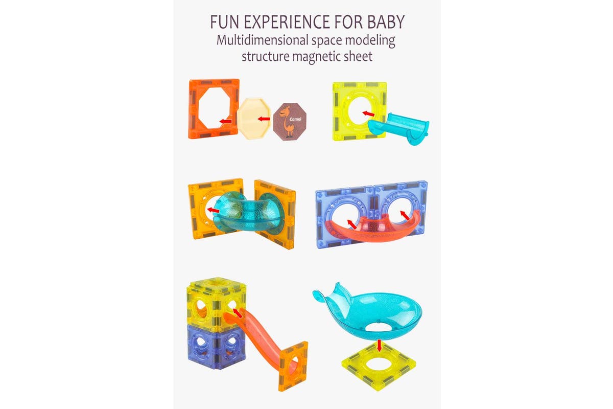 - Helps your child develop important math, science, spatial and tactile skills through puzzles and magnetic tiles blocks