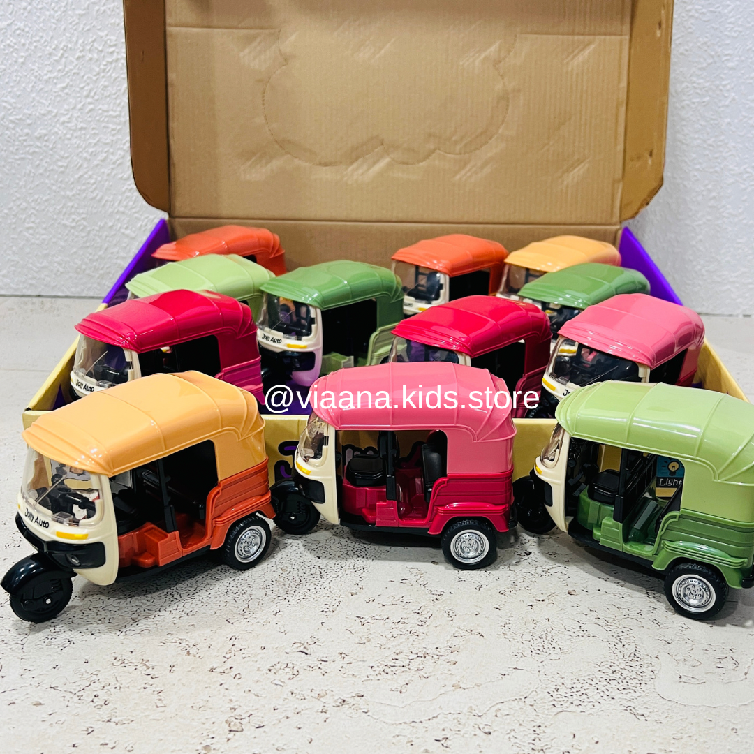 Sound Effects: The toy comes with built-in sound effects that replicate the sounds of a real auto rickshaw engine. These sounds add an interactive element to playtime.