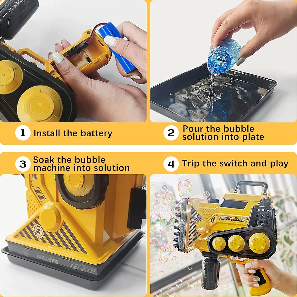 - 【Get more value for your money with Joy Spot! 】The bubble maker toys come with 1×bubble body, 2×bubble solution, 5×bubble concentrate, 1×bearing plate, 1×USB charging cable, 1×battery, 1×installation tool, 1×gift box. Additionally equipped 5×bubble concentrates with a free one. To make the bubble concentrate, pour 2 bags into the bubble solution, and then add water.