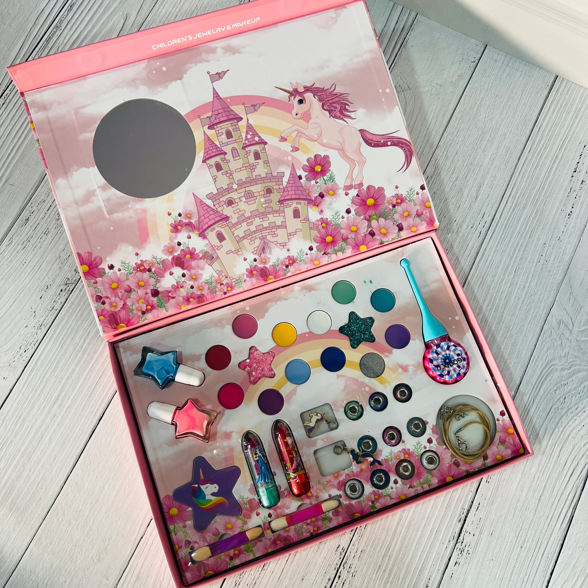 - Comprehensive Kit: Packed with a wide array of cosmetic items, including eyeshadow palettes, lip glosses, nail polishes, hair accessories, and more.