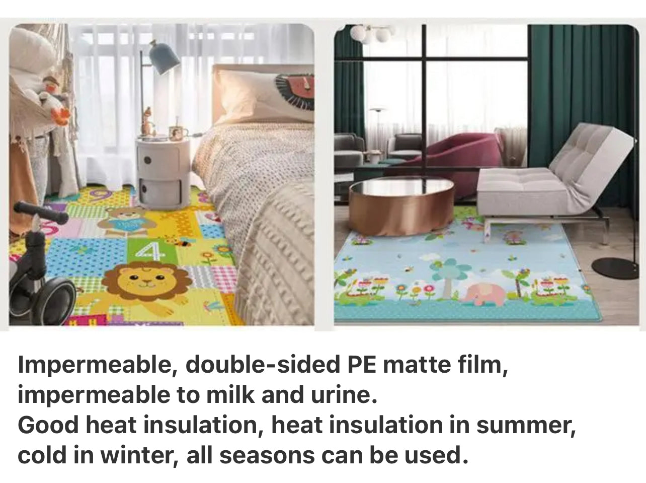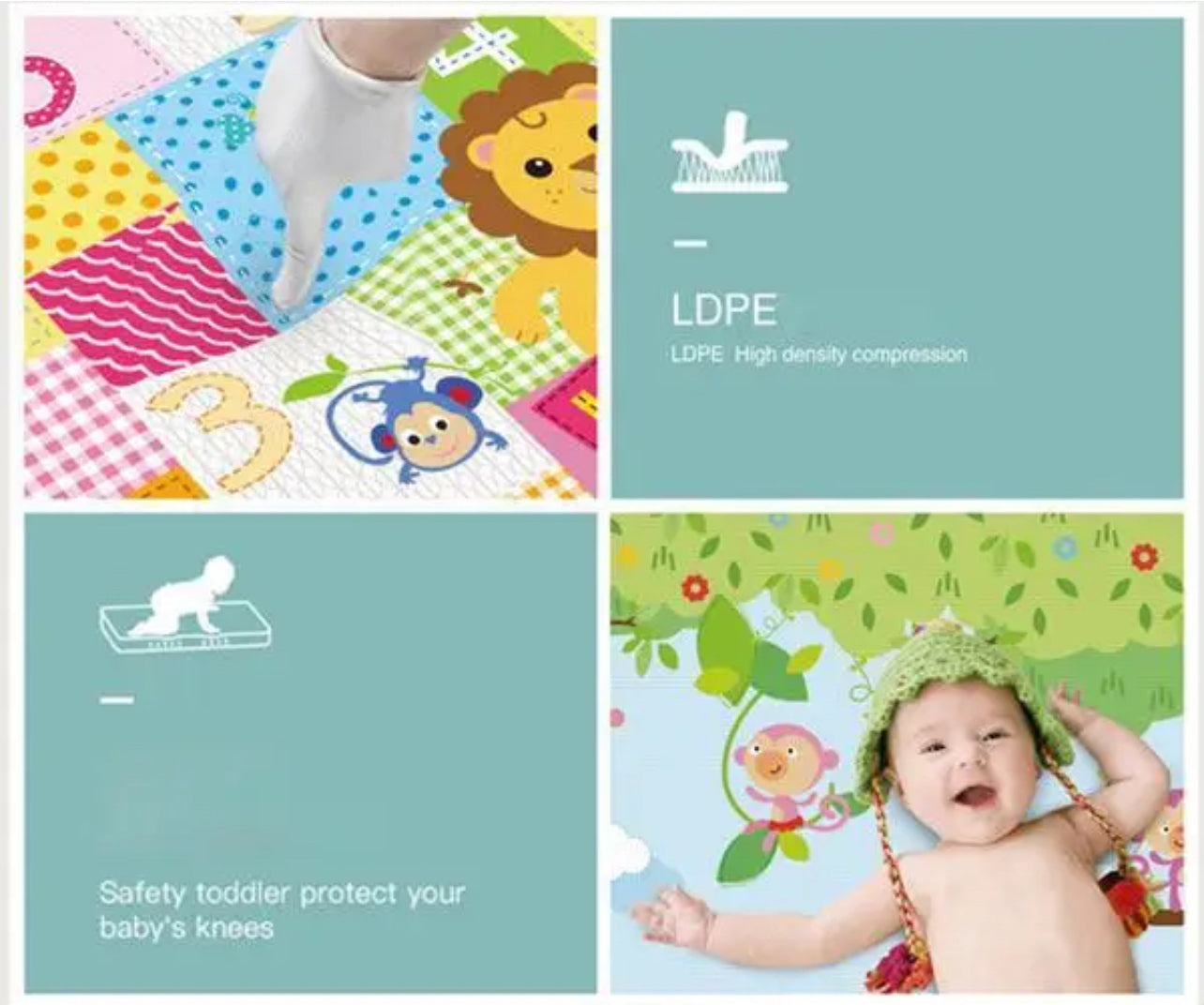 1. Scientific Thickness Good For Baby Growth The natural LDPE molecules form numerous solid 3D honeycomb structures under high density compression, which is enough to protect raw eggs from falling from a height of 1 meter, so that babies can learn to walk without falling.