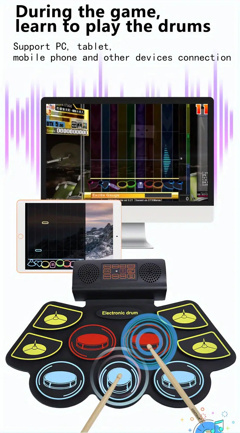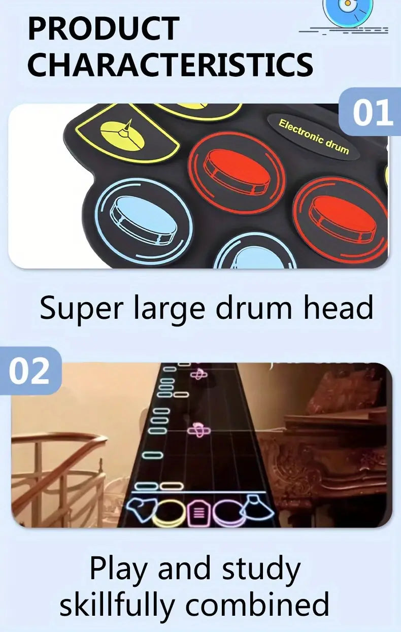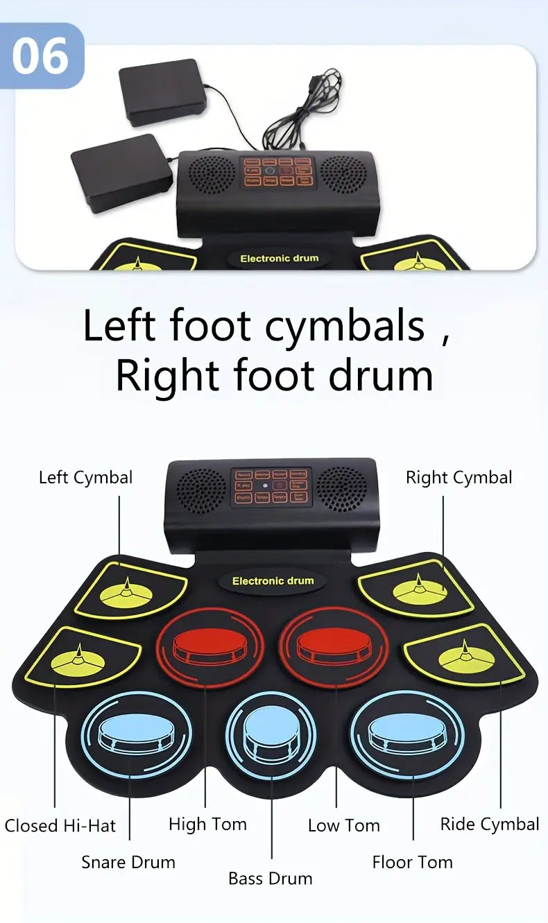 - All-Age Drumming Fun: Whether you're taking your first steps into drumming or an experienced percussionist, this electronic drum mat brings a comprehensive drum set experience to your fingertips, featuring Snare, 3 Toms, Crash, and Ride pads.