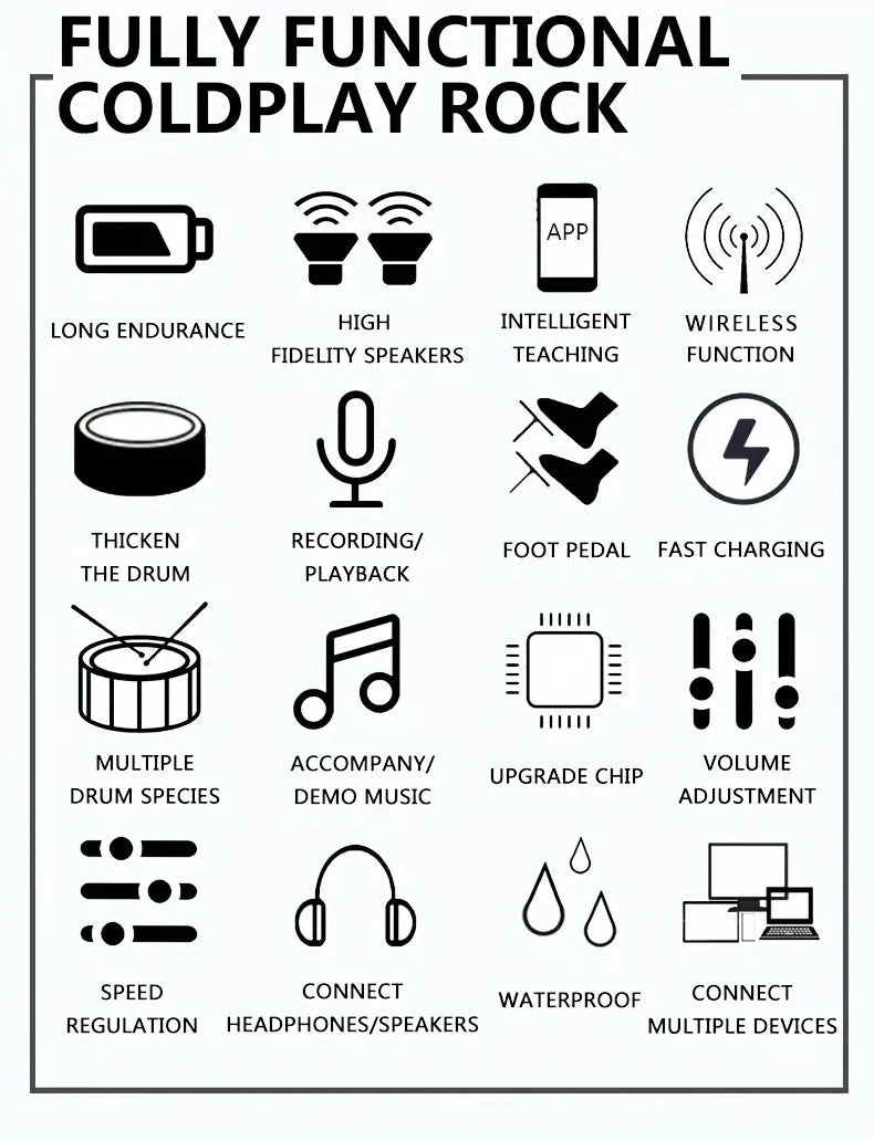 - Expansive Sound Library: Dive into a world of musical possibilities with five built-in tones, eight sample tracks, and three preset rhythms. These options serve as a creative playground for drummers of all levels, offering a wide array of sonic textures and backing tracks.