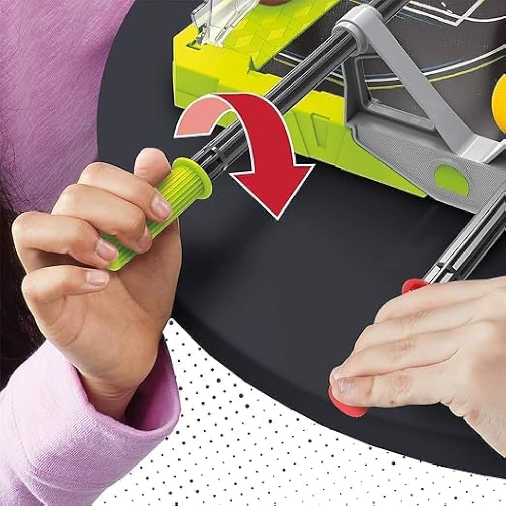 The Foosketball game is a fast-paced, head-to-head faceoff that combines elements of foosball and basketball. It takes skill, patience, and a bit of luck to get the feel when turning the handles to master and control the Foosketball figure and shoot balls into the basket across the court. Each orange ball is worth 1 point, and the golden ball is worth 2 points. Rack up the points for each basket until someone reaches 5 points for the win. Try an alternative mode of play using just one ball on the court and set a goal for the number of points it takes to win. It's an exciting and fun tabletop game for kids, and makes a great birthday or holiday gift for kids ages 8 and up !!