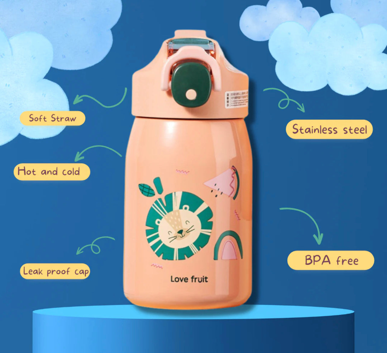 - Insulated double wall stainless steel water bottle for kids (capacity – 400ml)