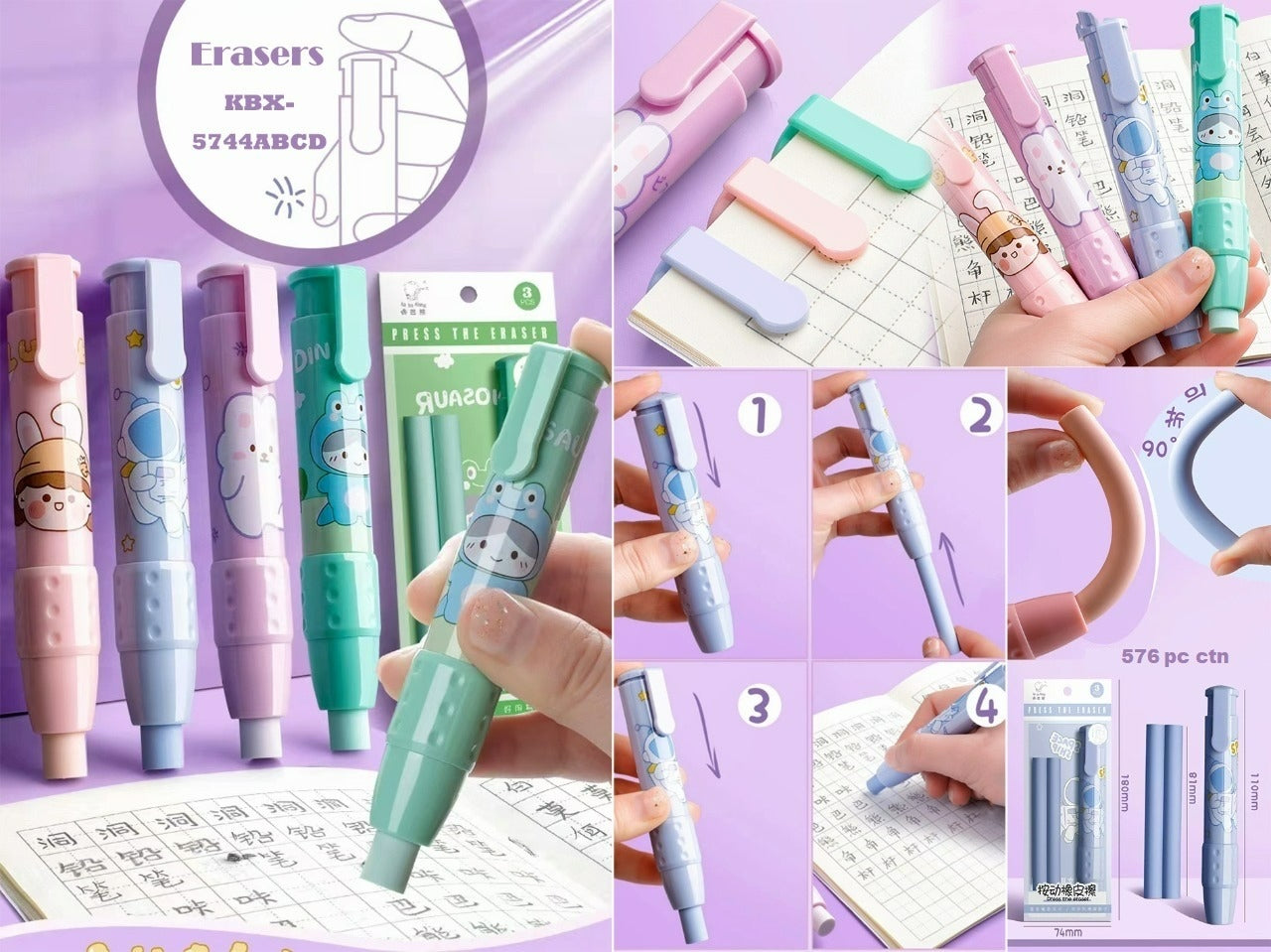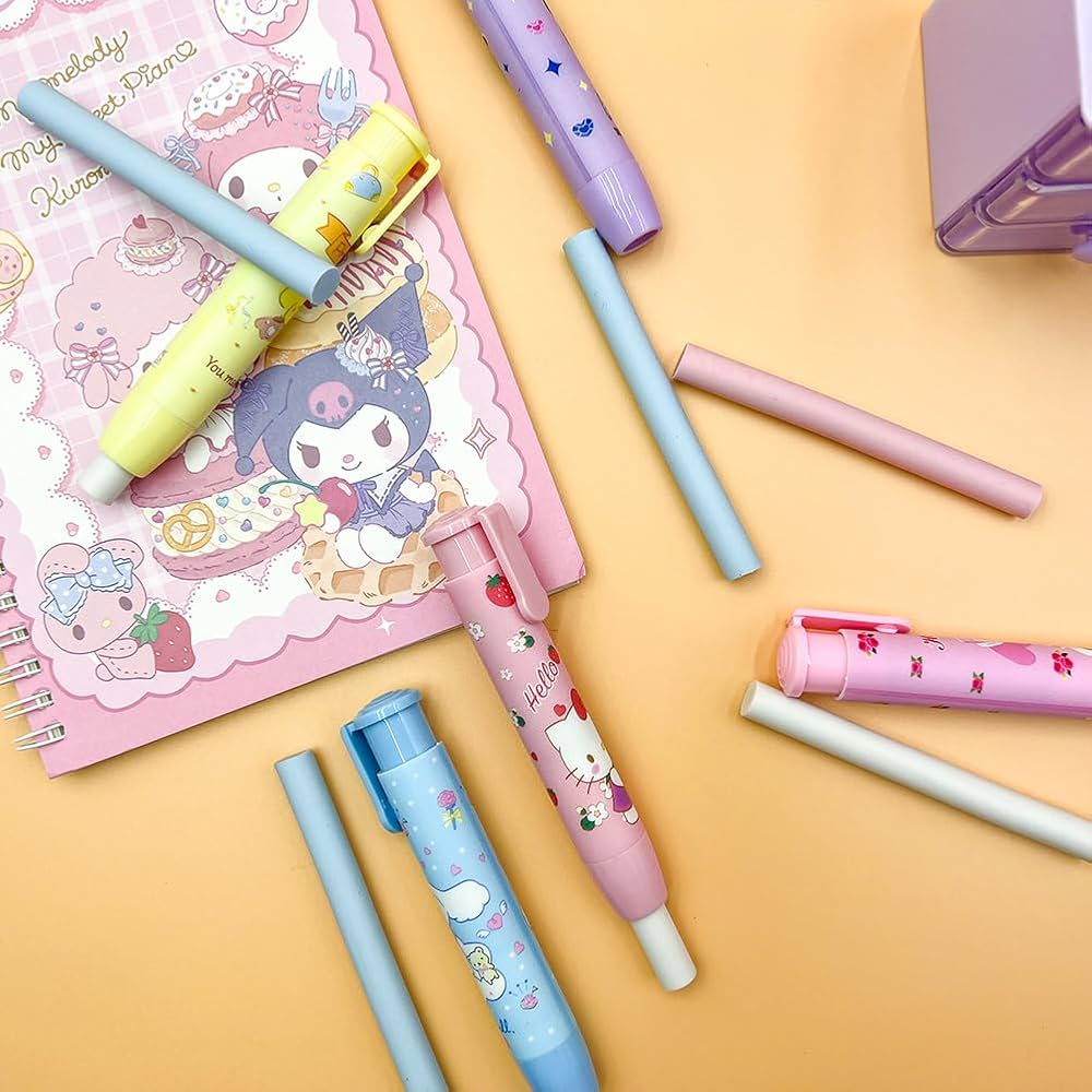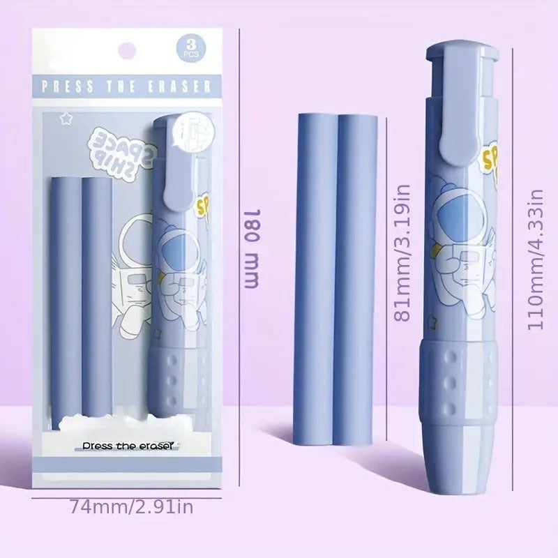 Super Cute Pushing Erasers with 3 Eraser Sticks
