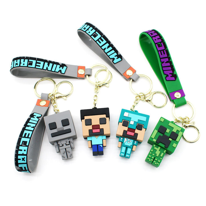 3D Game Minecraft PVC Keychain Name Steve Creeper My World Character Pendant Keychain Cute Bag Car Hanging Keyring Gifts For Minecraft and Lego Fans