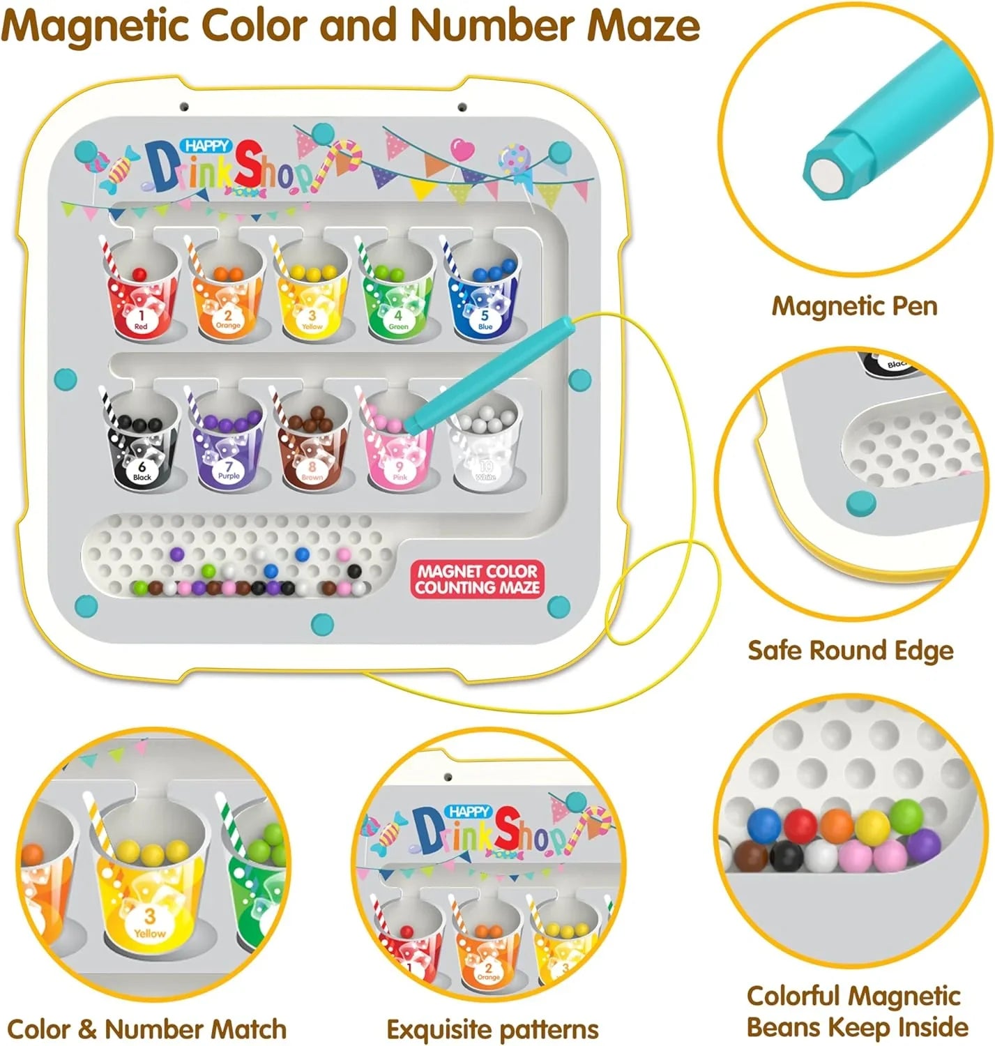 Dual Functionality: Combines a magnetic color and number maze with a Magnetic Dot Board in one versatile toy. Offers two engaging activities to keep toddlers entertained and stimulated.