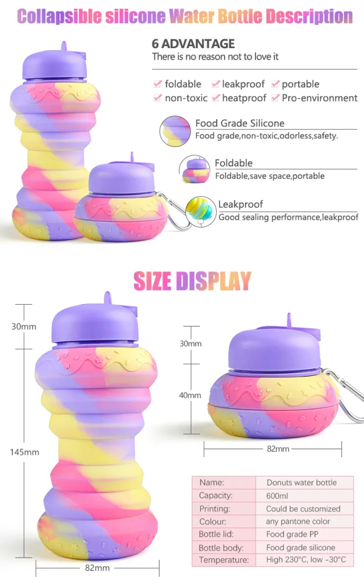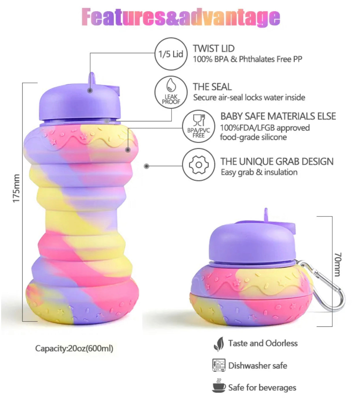 Collapsible and Portable: The silicone material allows the bottle to be collapsible when empty, making it easy to store and carry around in bags or pockets.