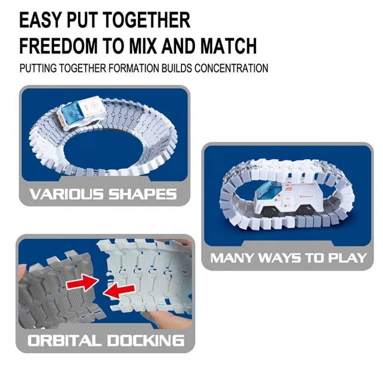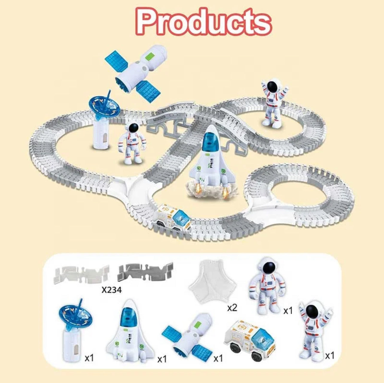 - Rich accessories: Our spacetrack toy set contains 250+ orbit components, spaceships, spacemen, space car 1 bridge and many more. Exquisite and realistic scenes bring your children a different experience!