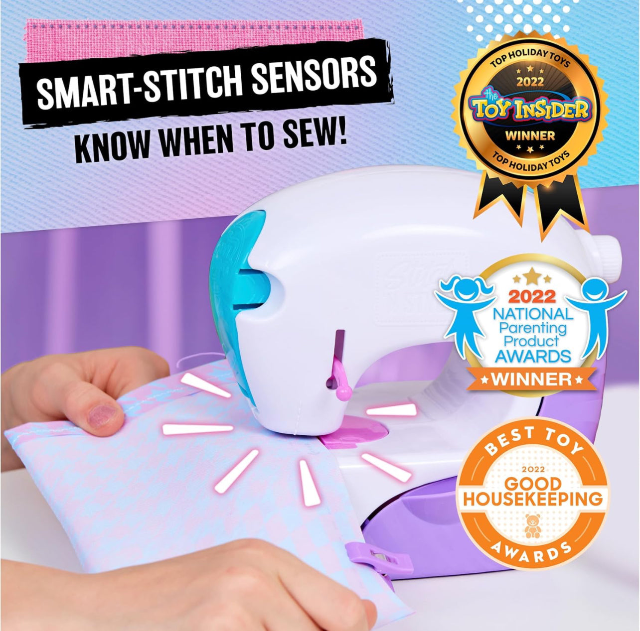 - SMART-STITCH SENSORS: The Stitch ‘N Style machine makes sewing easy; the sensors know when to sew! Place fabric under the sensor and the machine will automatically start sewing and sense when to stop!