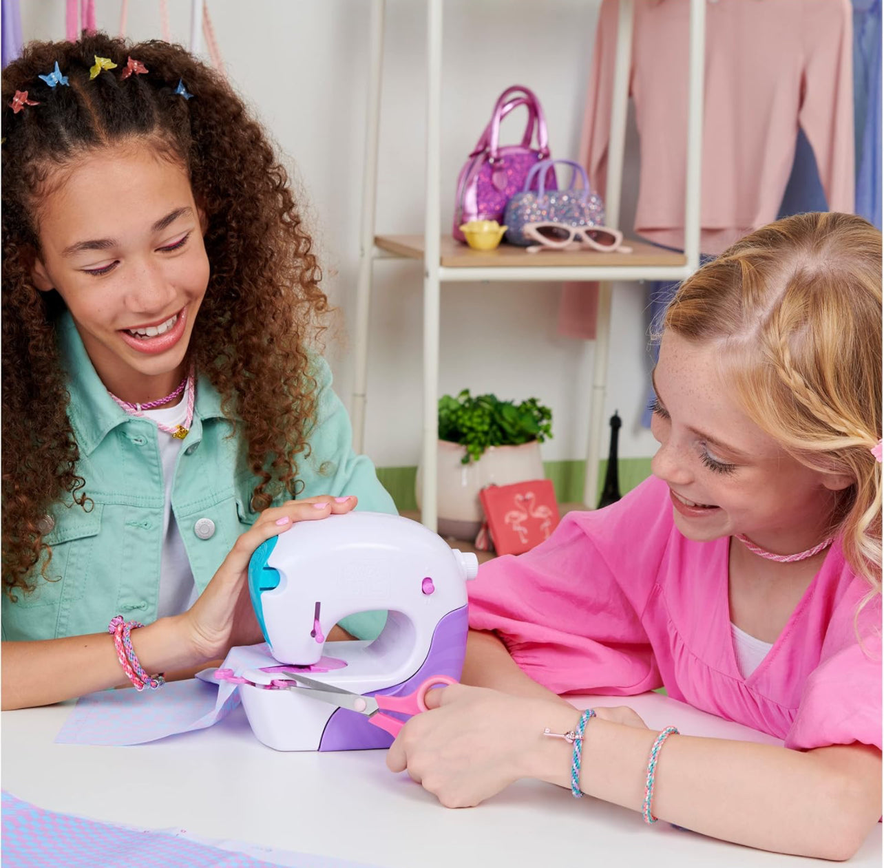 - SEWING KIT WITH NO THREADING: Pop the pre-threaded cartridge into the included sewing machine and learn real sewing – no threading needed! Unleash your creativity and design your own stylish accessories! Batteries required.