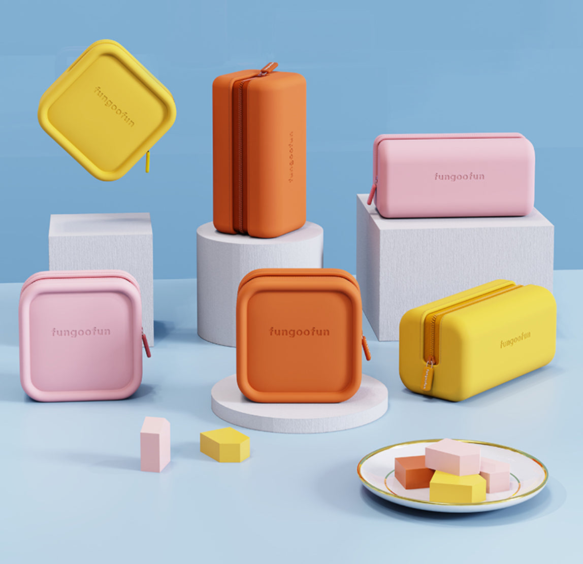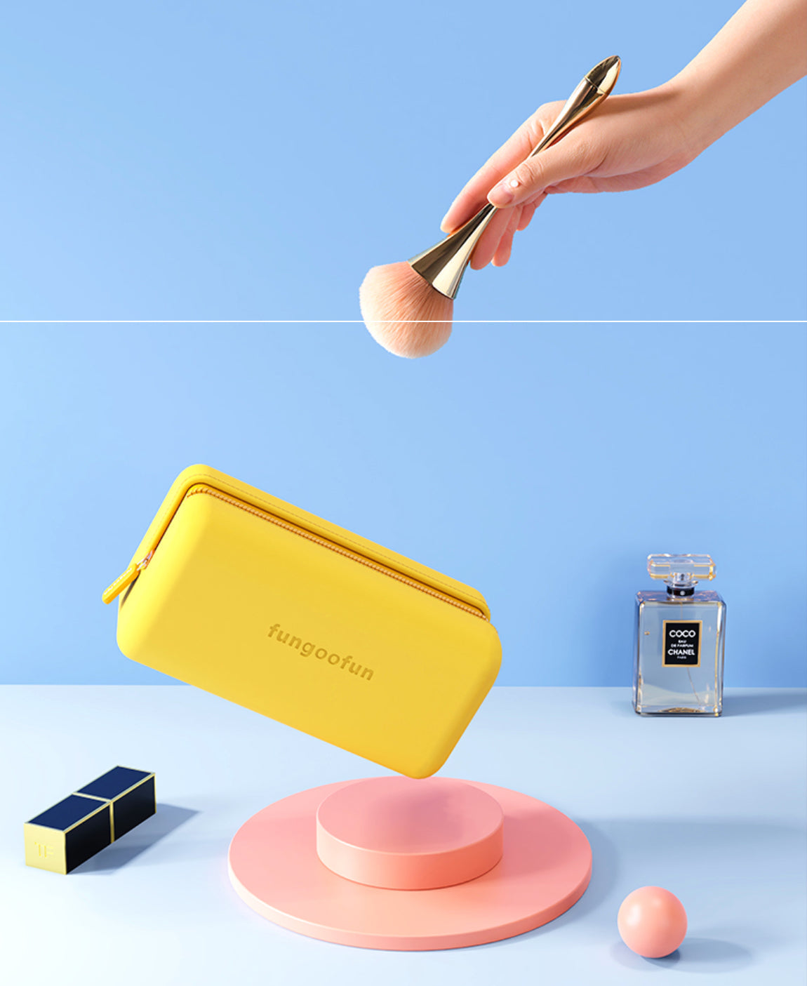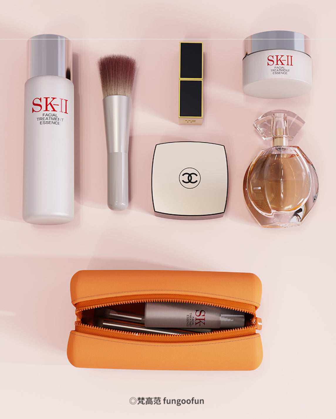 - A Square cosmetic bag. There is no compartments inside and flexible zipper design can make the small cosmetic bag have a large capacity. They can be used for change, lipstick, makeup tools, travel tower , coin and shower toiletries etc.