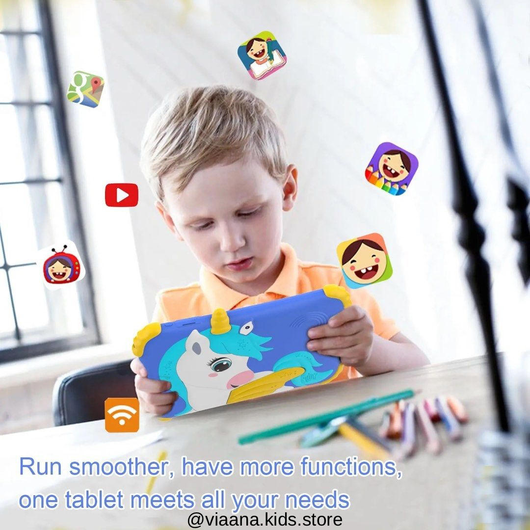 Our Multi-Functional Kids Tablet MyPad comes with GMS Certified IWAWA Kids Apps Preloaded Equipped with an adjustable stand.