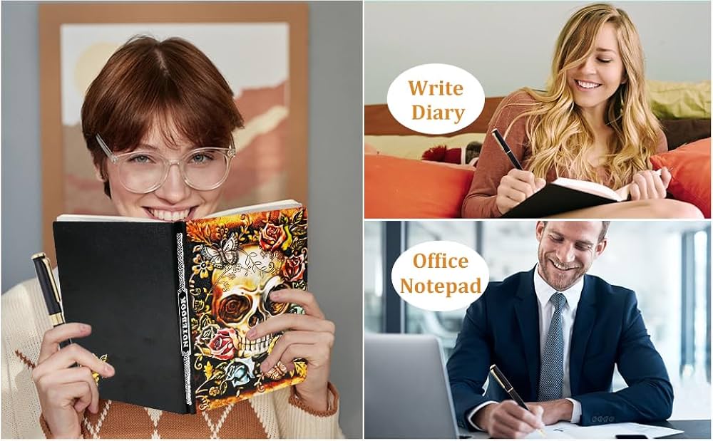 - 【Material and Craft: 】The appearance is hand-made with high-quality environmental protection imitation leather, 3D embossed craftsmanship, exquisite workmanship; Lined paper writing smooth, ink is not easy to penetrate, using thread glue bond, the paper is not easy to fall off, can be used for a long time.